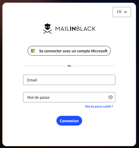 Pour se connecter à MAILINBLACK, il faut se rendre sur le lien suivant : https://antispam.xefi.fr/home/login